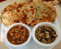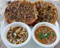 Method First Dough: Sieve flour with salt. Add yogurt, milk, sugar and sufficient water. Knead well into a medium soft dough. Apply a little desi ghee and knead it further. Keep it under wet cloth for one hour. Knead the dough once again and divide the dough into eight equal portions. Second Dough: Sieve refined flour with salt. Rub in butter till it becomes crumbly. Gradually mix in the milk and knead to make a soft and smooth dough. Cover with a damp cloth and rest the dough for ten minutes. Knead the dough once again and divide the dough into eight equal portions and form them into smooth balls. Cover with the damp cloth and rest for another ten minutes. Stuffing: Mix potatoes, onion, salt, green chillies, red chilli powder, cumin powder, anardana and coriander leaves. Mix with hands.Divide the potato mixture into eight equal portions and keep aside.Flatten a portion of the first dough, place a portion of the potato mixture in the centre and fold the dough over to form a ball. Flatten a portion of the second dough and place the stuffed ball in the centre and fold to form a ball. Place this on a lightly floured surface and roll gently into a disc. Rub a wet hand on one side of the kulcha, gently stick the dampened side to the inner wall of the pre heated tandoor. Take care to apply enough water while sticking the kulcha. Then wait for two to three minutes till the kulcha color converts to brown. After Waiting gently dislodge the kulcha from the tandoor wall. Brush the hot kulcha with butter and serve immediately. |
