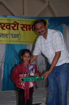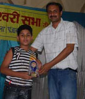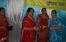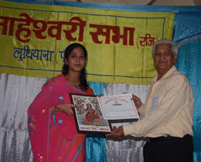 Smt Nina Bihani being honoured for her excellent performance as Mahila mandal president